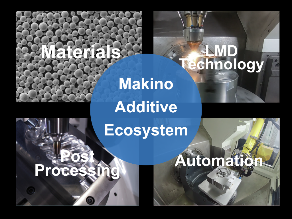 In our commitment to speed up the adoption of laser metal deposition tehcnology, Makino has complment the additive manufacturing machine wiht metal materials portfolio, post-machining techniques, and automation support.