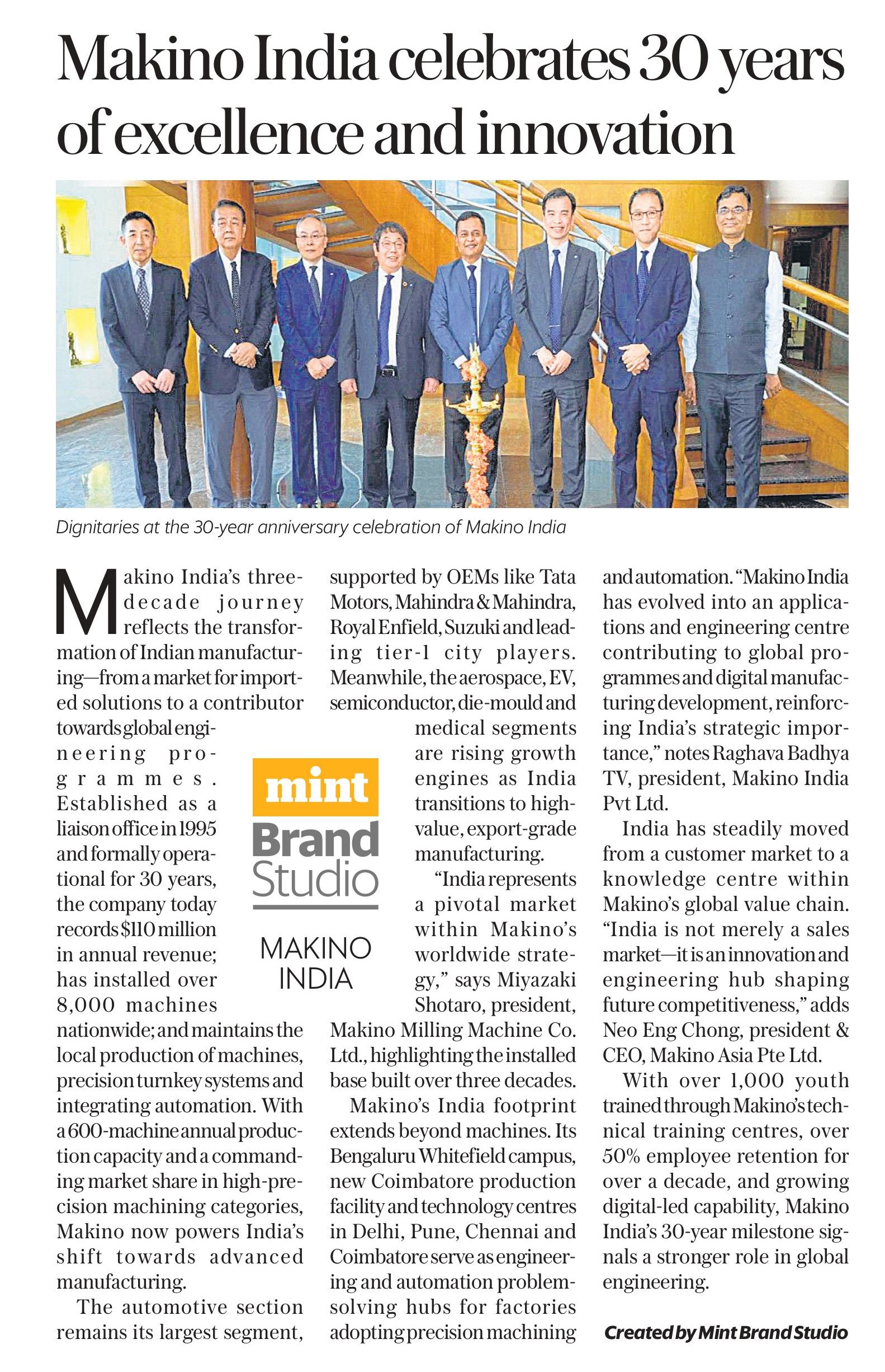 On 11th December 2025, Live Mint featured Makino India's innovative transformation as the organization marks its 30th anniversary milestone.